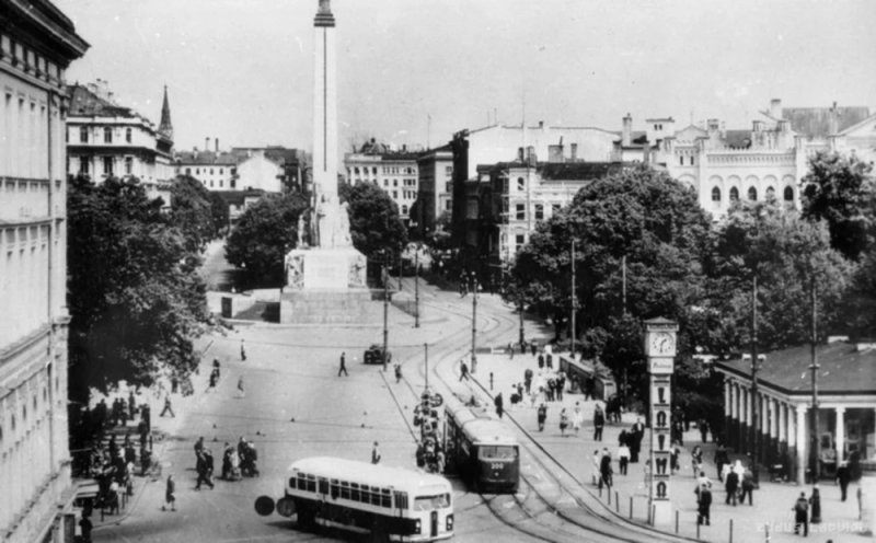 Эпоха трамваев На самых старых черно-белых снимках мы видим Ригу 1930-х и 1940-х годов. В то время бульвар Свободы был главной транспортной артерией. Трамвайные рельсы пролегали с одной стороны памятника. На фото видны характерные «рогатые» вагоны того времени. Трамвай был основным средством передвижения, и маршруты проходили прямо через центр, связывая Старый город с новыми райо...
