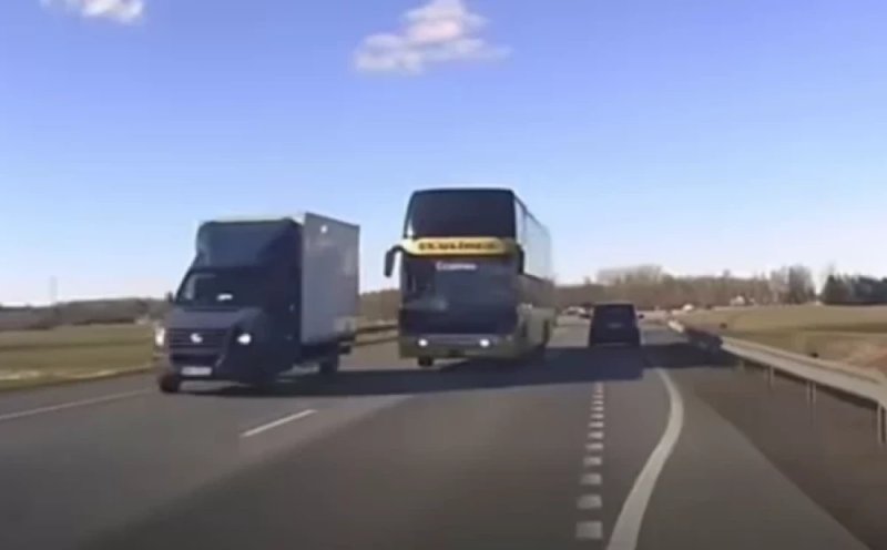Очевидец снял опасный обгон, который предпринял рейсовый автобус на трассе A7 и который едва не привел к аварии. Водителям пришлось резко реагировать, чтобы избежать столкновения. К счастью, обошлось без пострадавших.