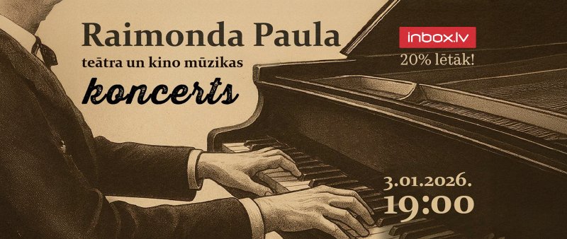 2026.gads būs Maestro Raimonda Paula 90. jubilejas gads, kurš aizsāksies ar Raimonda Paula teātra un kino mūzikas koncertu “Xiaomi Rīga” arēnā 3. janvārī. Savukārt Raimonda Paula dzimšanas dienā 12.janvārī VEF kultūras pilī notiks Raimonda Paula un Guntara Rača koncertuzvedums "Putnu dziesmas". Inbox.lv lietotājiem, izmantojot atlaižu kodu InboxMaestro, ir iespēja līdz 30.novembrim iegādāties biļetes uz abiem koncertiem ar 20% atlaidi.